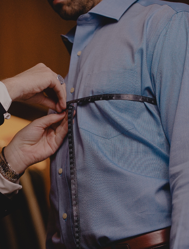 We will place the measuring tape just below your arms and take note of the width across your chest. Our stylists will hold the measuring tape snugly but not too tight to ensure an accurate reading. Also, we always encourage men to avoid holding their breath during the process to prevent their new ensemble from fitting too tightly.